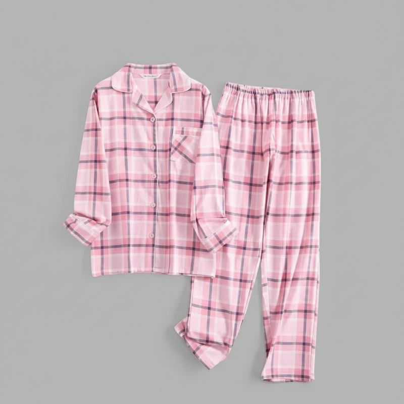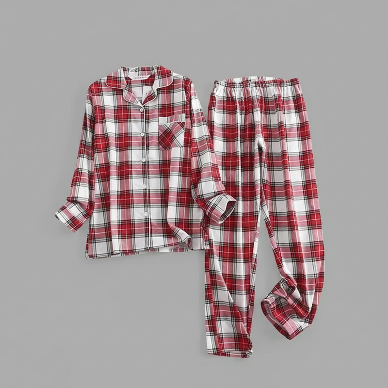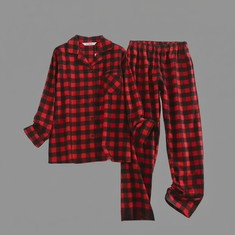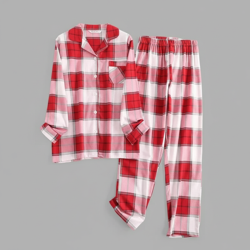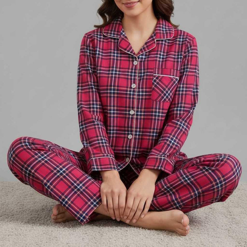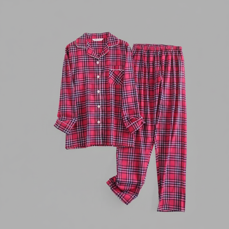 Flanelowa Piżama Damska_ | Długie Rękawy, Kratka, Bawełna