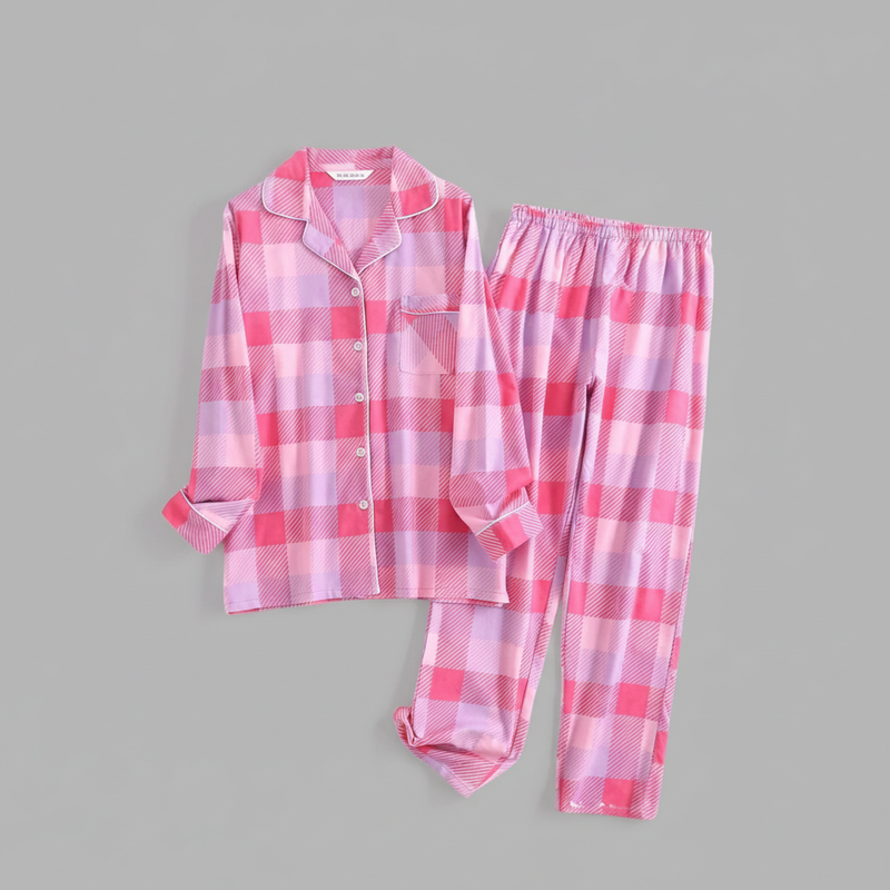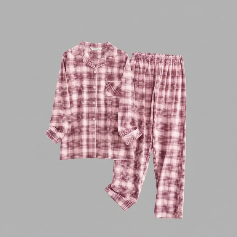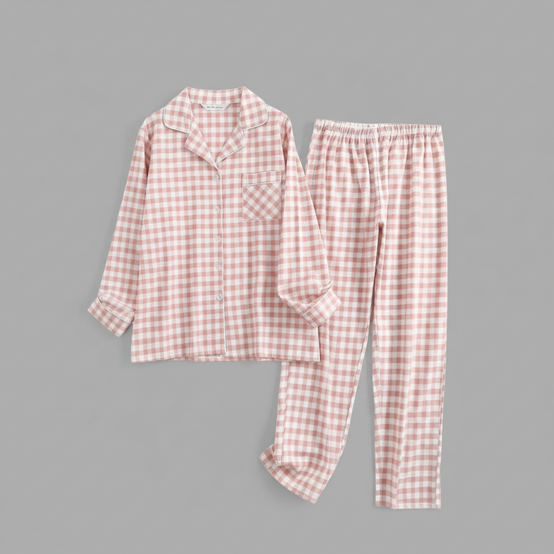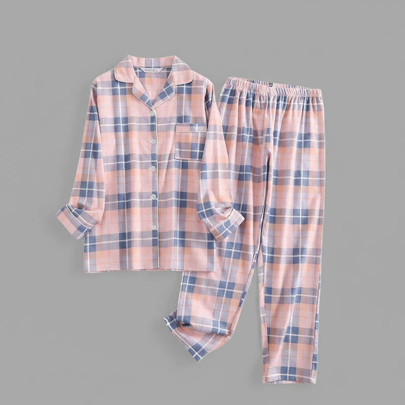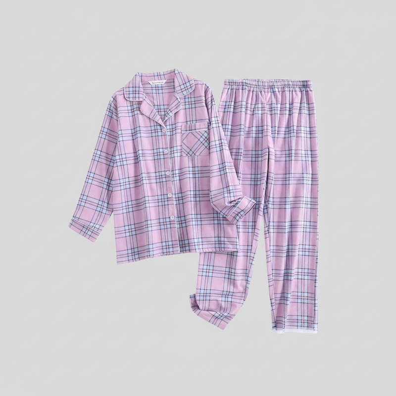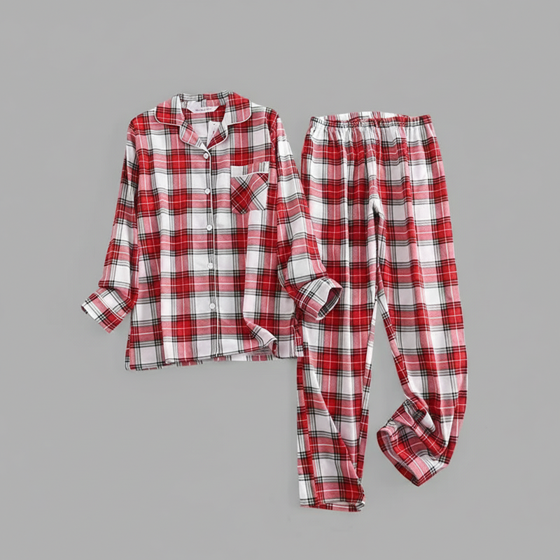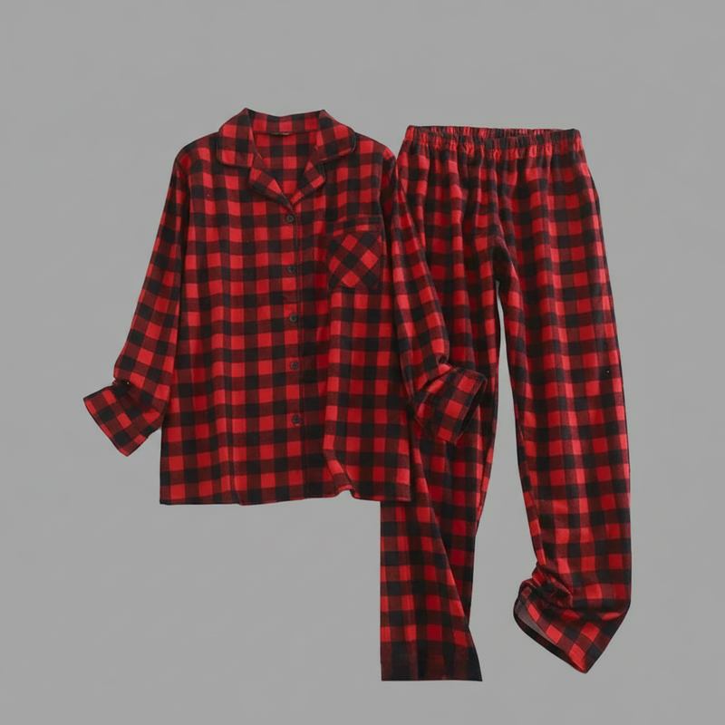 Flanelowa Piżama Damska_ | Długie Rękawy, Kratka, Bawełna