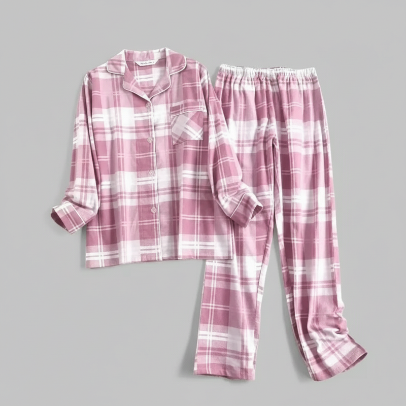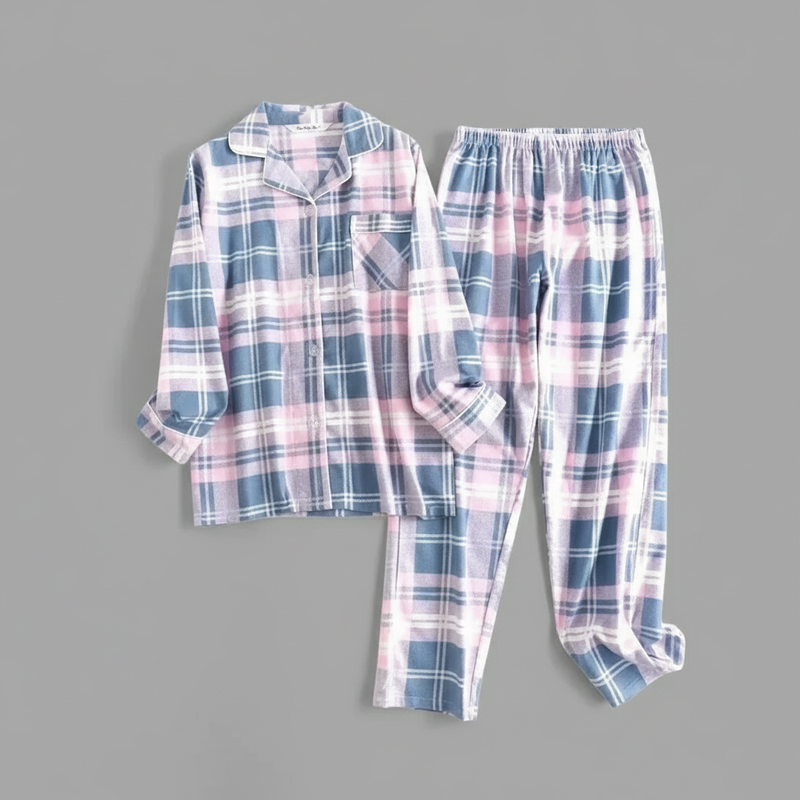 Flanelowa Piżama Damska_ | Długie Rękawy,...