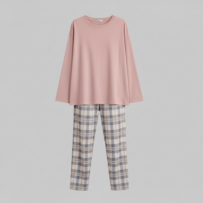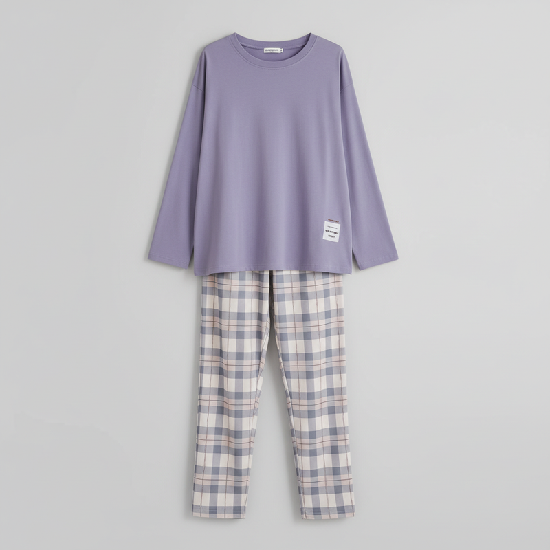 Komplet Piżamowy w Kratkę | Damski Zestaw Komfortowy